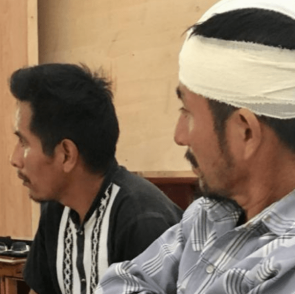 José Luis Gutiérrez and César Hernández, from the San Sebastián Bachajón community also in Chilón are Maya Tseltal indigenous defenders and farmers. They have spent most of their lives defending their rights to and use of their ancestral land, particularly against the construction of mega projects and other large infrastructure projects.